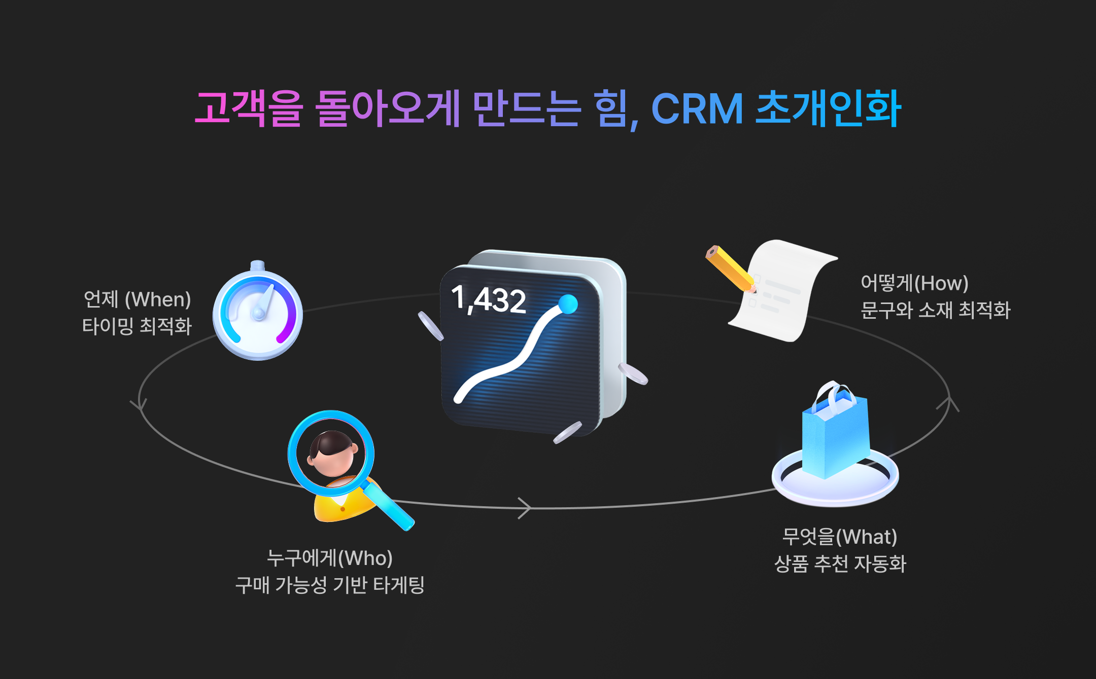 가장 이상적인 전략은 오픈마켓에서 초기 트래픽과 매출을 확보한 뒤, 자사몰로 고객을 이전시켜 충성 고객으로 전환하는 하이브리드 전략이다. 그 중심에는 언제·누구에게·무엇을·어떻게 전달할지 읽어내는 데이터 기반 CRM 초개인화 전략이 있다.
