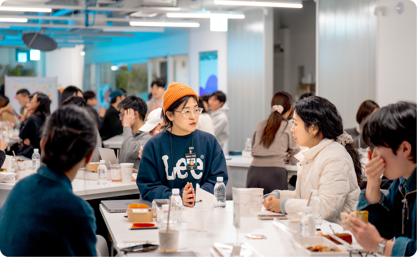 서포터즈와 함께라면 처음 만난 옆자리 사람과도 금방 이야기를 나눌 수 있어요. ⓒ 아임웹