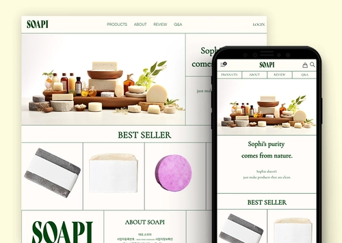 상품 이미지를 중심으로 구성하여 시각적인 매력을 극대화했고, 'Shop', 'About', 'Login', 'Cart' 등의 메뉴를 통해 정보 접근성을 높였어요. 필요한 정보를 쉽게 찾을 수 있도록 설계하여, 사용자들이 편리하게 웹사이트를 이용할 수 있도록 했어요. 또한, 아임웹의 기능을 활용하여 관리가 용이하도록 구성하였습니다. 고급스러운 디자인과 사용 편의성을 중시하는 뷰티 브랜드 고객님께 적극 추천드립니다.