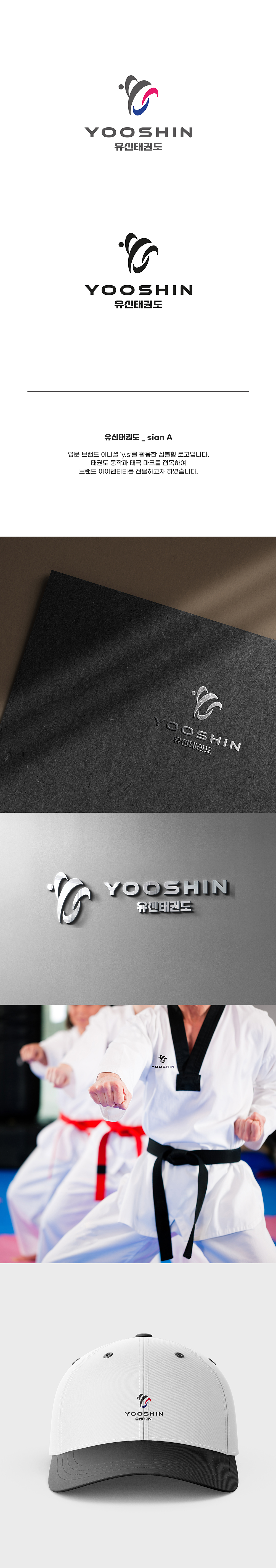 컨셉은 '강인함과 신뢰를 담은 유신태권도의 새로운 얼굴'이에요. 심플하면서도 기억에 남는 심볼을 디자인하여, 유신태권도만의 독창적인 브랜드 아이덴티티를 구축하고자 했어요. 태권도의 역동적인 움직임을 시각적으로 표현하는 동시에, 신뢰감을 주는 색상과 서체를 사용하여 전문적인 이미지를 강조했죠.