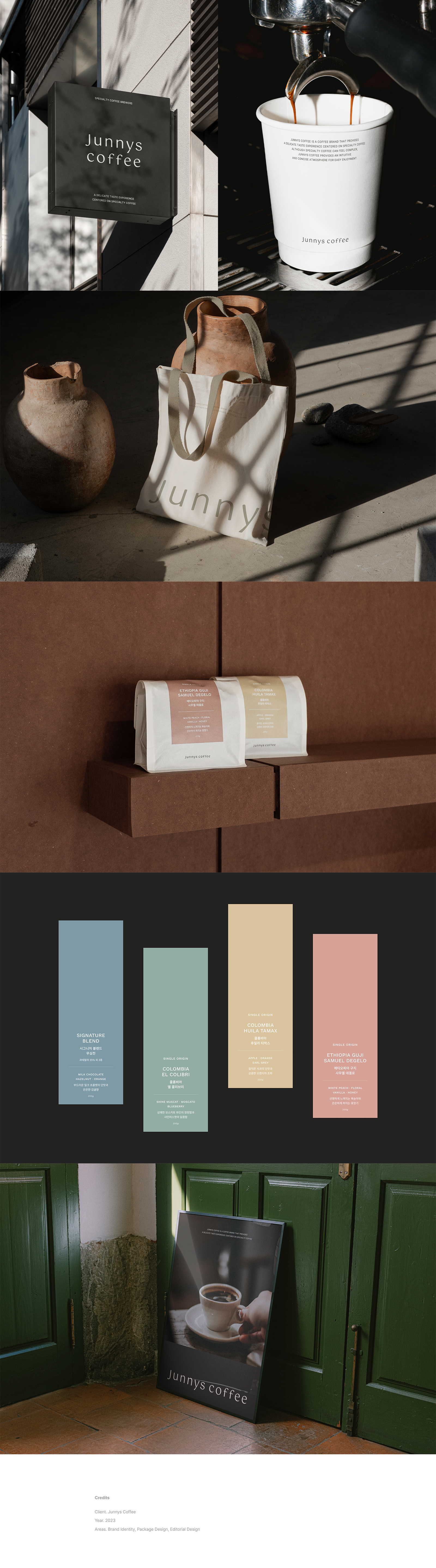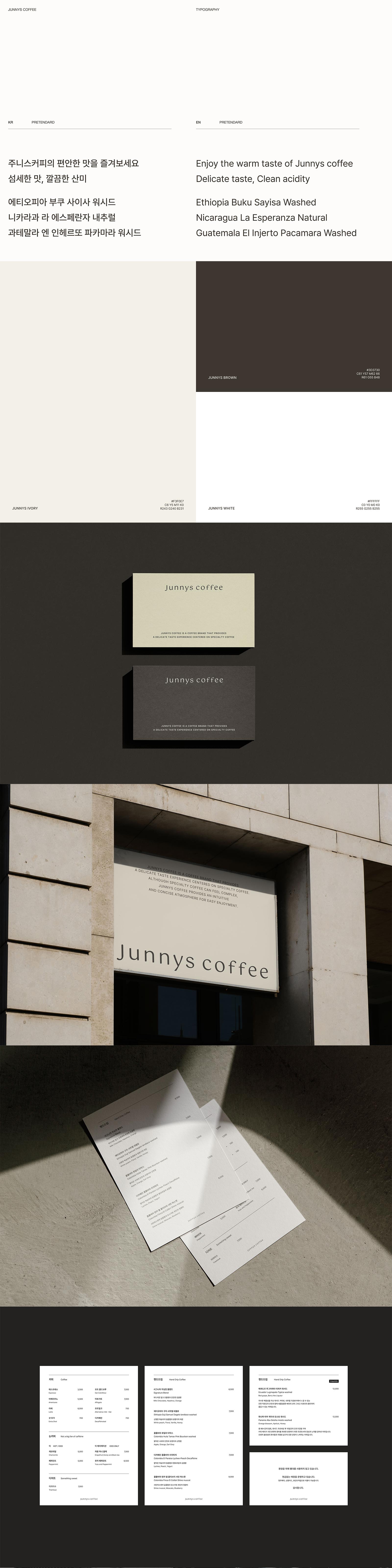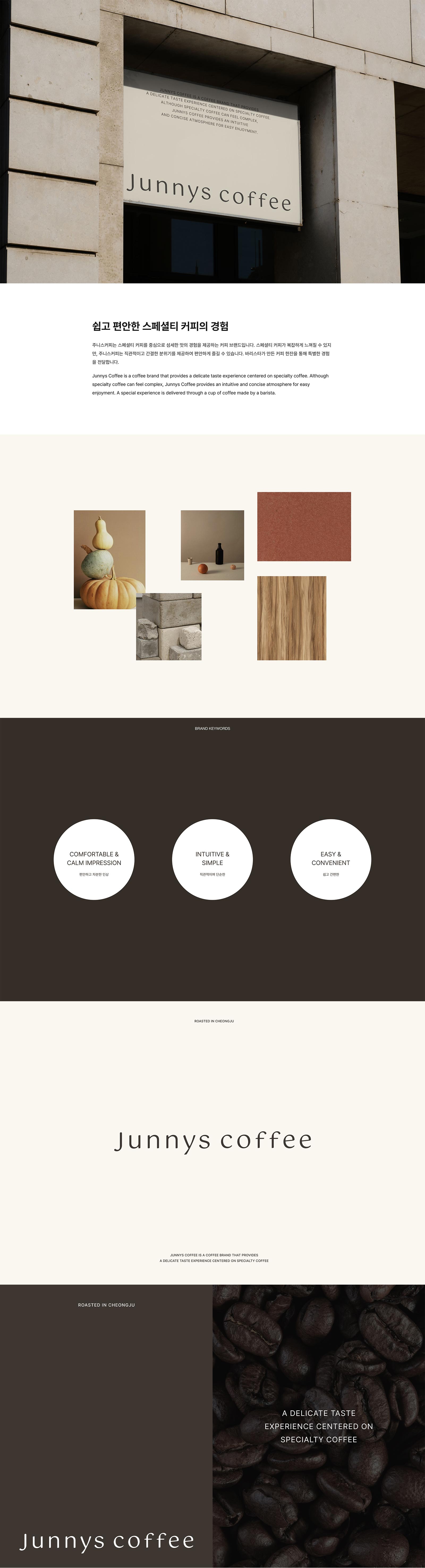 Junnys Coffee는 스페셜티 커피의 고급스러움과 편안함을 동시에 느낄 수 있도록 디자인된 브랜드입니다. 심플하고 모던한 디자인, 직관적인 웹사이트 구성을 통해 고객에게 쉽고 편안한 경험을 제공하고자 했어요. 따뜻하고 차분한 색감과 고급스러운 서체를 사용하여 브랜드의 아이덴티티를 확립하고, 전반적인 디자인에 일관성을 유지했어요. 브랜드 로고는 심볼과 워드마크를 조합하여 시각적인 인지도를 높이고 기억에 남는 디자인으로 제작했습니다. 웹사이트는 고해상도의 제품 이미지와 간결한 설명을 통해 고객이 원하는 정보를 쉽게 찾을 수 있도록 구성했어요. 모바일 및 PC 환경 모두에서 최적의 사용자 경험을 제공하기 위해 반응형 웹 디자인을 적용했고요. 검색엔진최적화(SEO)를 고려한 웹사이트 구조와 콘텐츠 구성은 브랜드의 온라인 가시성을 높이는 데 도움이 될 거예요. 타겟 고객은 스페셜티 커피를 즐기는 젊은층과 고급 커피에 대한 높은 이해도를 가진 성인층입니다. 고객이 Junnys Coffee의 매력에 빠져들고, 긍정적인 경험을 쌓도록 하는데 중점을 두었어요. 쉽고 편안하며, 고급스러움까지 놓치지 않은 웹사이트와 브랜드 디자인으로, Junnys Coffee만의 특별한 분위기를 전달하고 싶었어요.