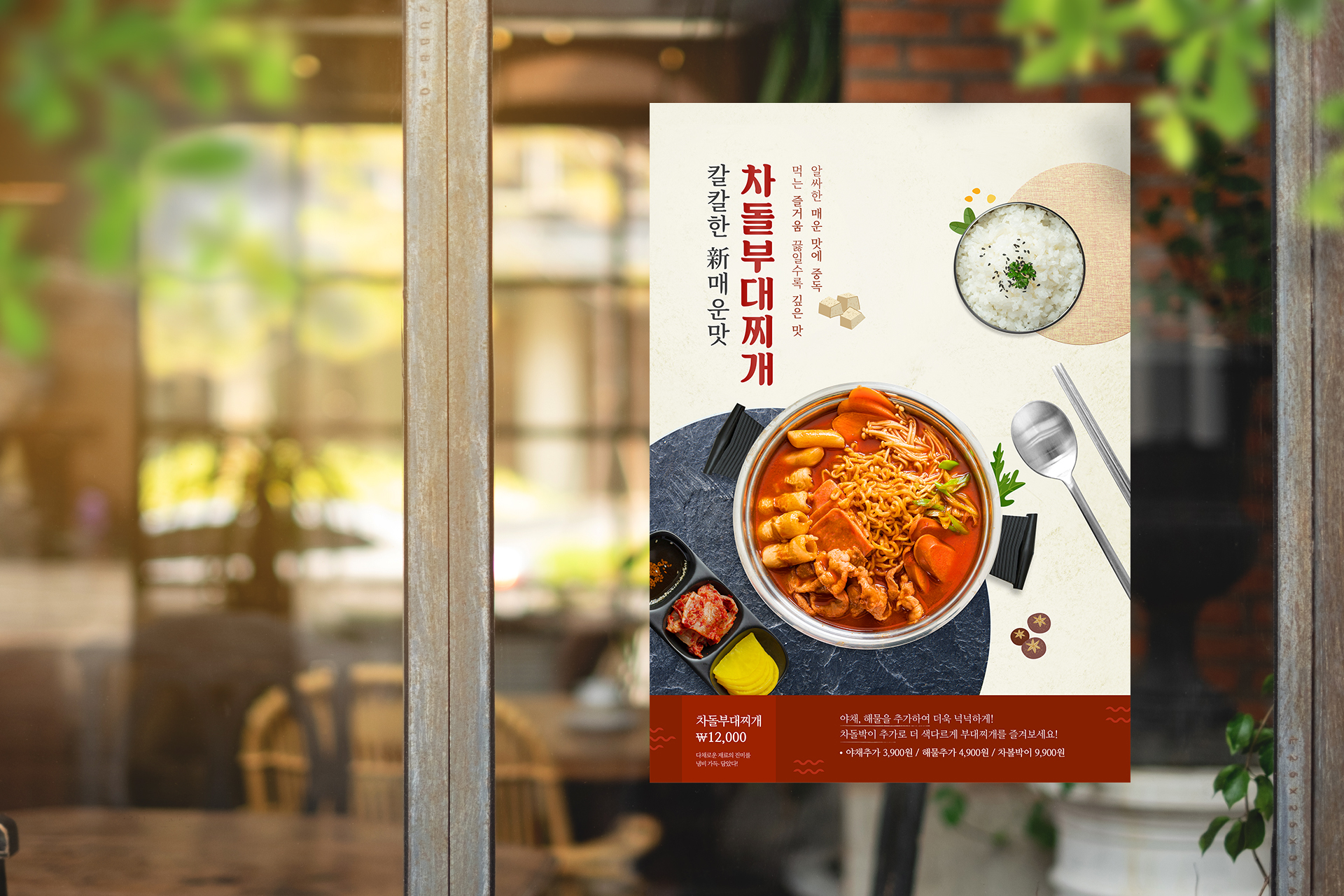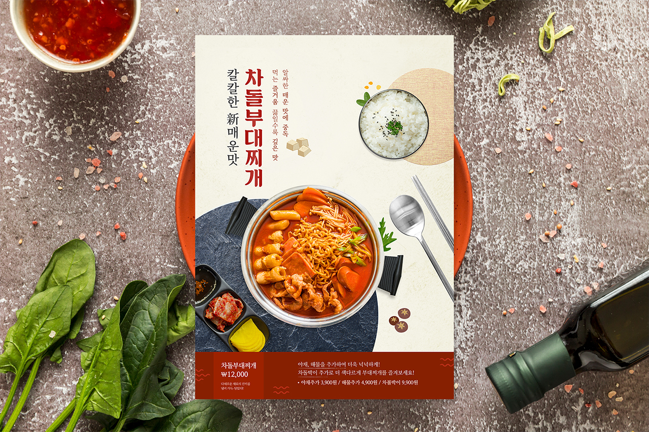 타겟 고객은 부대찌개 프랜차이즈를 운영하시거나, 신메뉴 출시를 통해 매출 증대를 꾀하는 사업주분들이세요. 포스터는 가독성과 시각적인 매력을 동시에 갖춰, 가게 내부나 배달앱 등 다양한 곳에 활용하여 홍보 효과를 높일 수 있도록 제작했답니다.