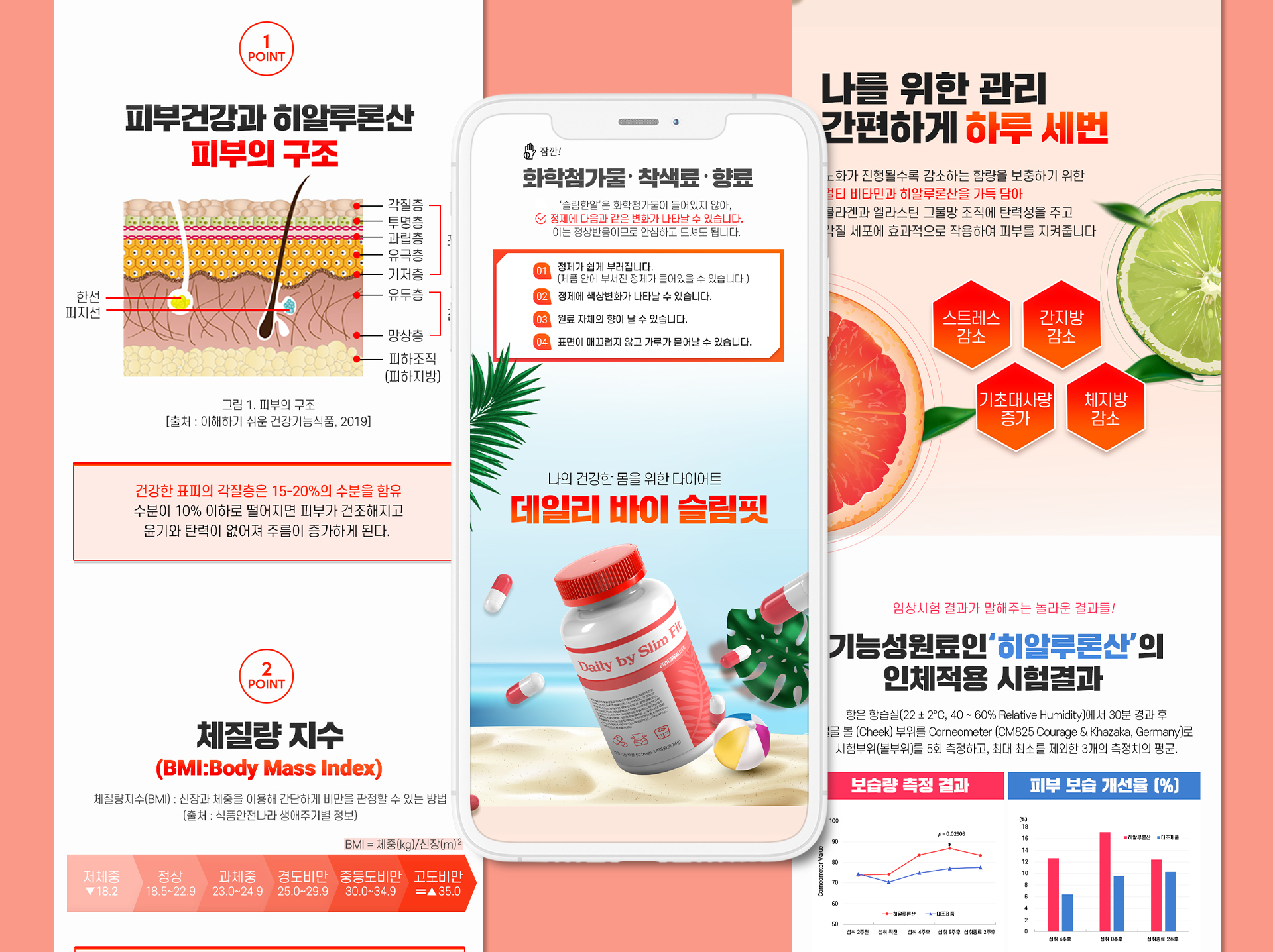 컨셉은 '과학적이고 신뢰할 수 있는 다이어트 정보 제공'으로, 소비자들이 제품에 대한 이해도를 높이고 구매를 결정하는 데 도움이 되도록 정보들을 명확하고 간결하게 전달하고자 했어요.