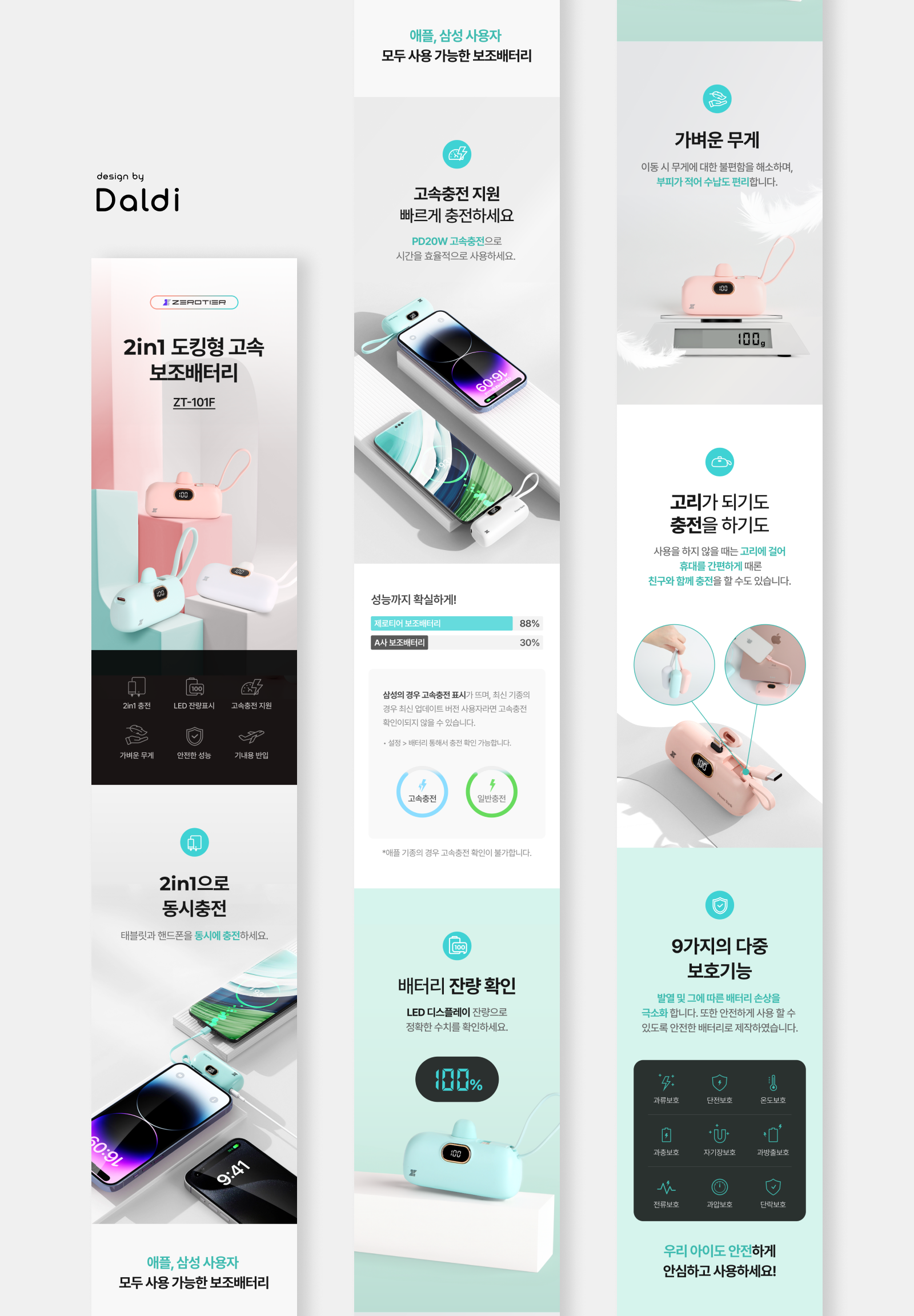 달디공작소는 2in1 도킹형 고속 보조배터리의 매력을 극대화하는 상세페이지를 제작했어요. 제품의 기능과 디자인을 효과적으로 보여주는 시각적 요소와, 고객이 제품 정보를 쉽게 이해할 수 있도록 구성했답니다.
