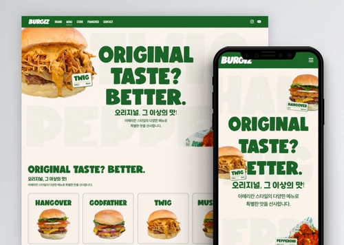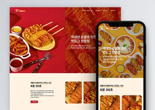 '따띠삼겹'은 젊은 세대를 타겟으로 트렌디하고 시각적으로 매력적인 웹사이트를 원했습니다. 따라서 메인 비주얼에 신경을 많이 썼어요. 맛있는 삼겹살과 비빔면 사진을 중심으로 시선을 사로잡는 디자인을 적용했고, 영상 콘텐츠를 활용해 브랜드의 생동감을 더했죠.