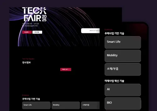 컨셉은 '미니멀하면서도 시각적으로 강렬한 인상을 주는 웹사이트'였습니다. 자카란다 디자인의 주요 활동 분야인 행사 및 전시 디자인을 고려하여, 동적인 요소를 활용하고, 어두운 배경에 퍼플 계열의 강렬한 색상을 사용하여 시선을 사로잡는 디자인을 구현했어요. 메인 비주얼은 입체적인 삼각형 애니메이션으로 제작하여 브랜드의 독창적인 이미지를 부각했고요.