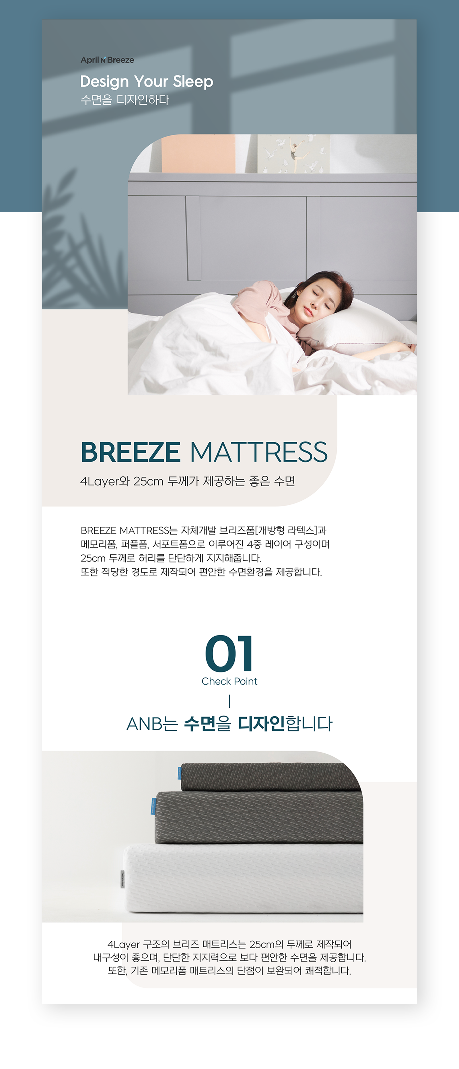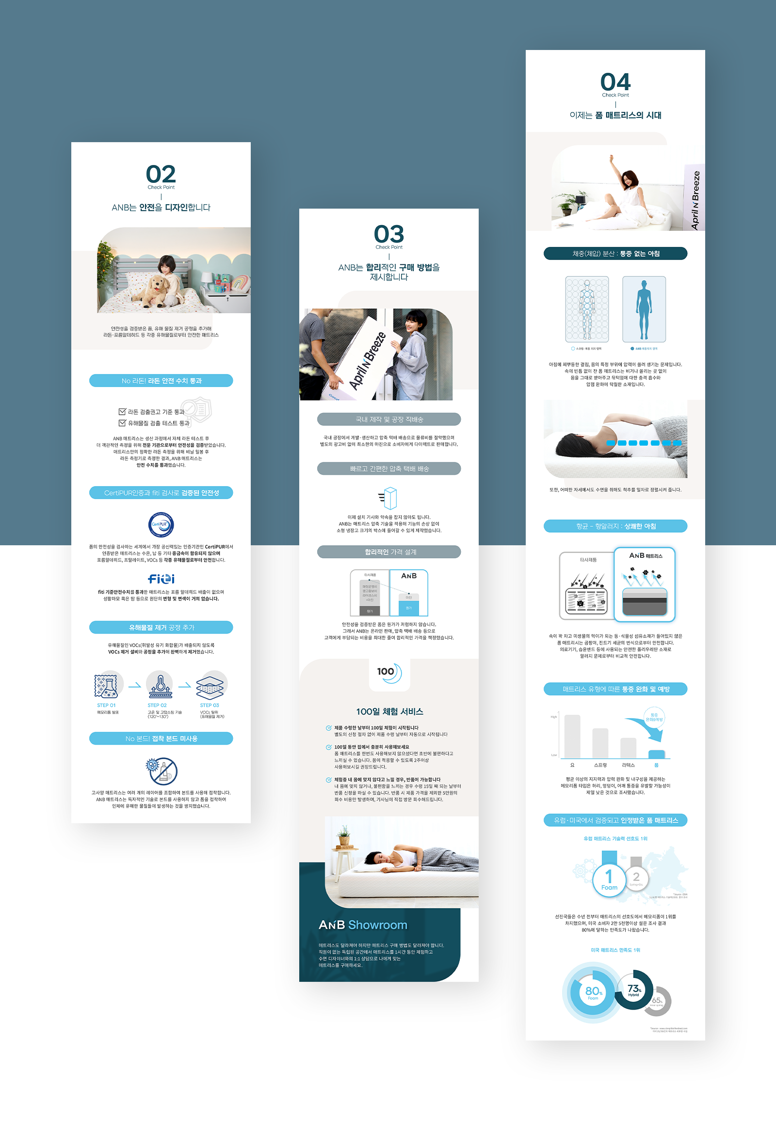안녕하세요! 디자인온엑스입니다. 이번에 소개해 드릴 포트폴리오는 April N Breeze 침구 브랜드의 상세페이지 제작 사례입니다. 고객의 브랜드 이미지와 제품 특징을 효과적으로 전달하기 위해 심혈을 기울여 제작했어요. 먼저, 컨셉은 '고급스럽고 편안한 분위기 속에서 제품의 기능과 장점을 명확하게 전달하는 것'이었어요. 따라서, 깨끗하고 고급스러운 화이트와 파스텔톤을 기본 색상으로 사용하고, 고품질의 제품 이미지와 함께, 핵심 정보들을 간결하고 명료하게 전달하는 데 중점을 두었답니다. 타겟 고객은 20대 후반부터 40대까지의 여성 고객층으로, 편안함과 심미성을 모두 중요시하는 분들을 위해 제작했어요. 상세페이지는 제품의 특징과 기능을 직관적으로 보여주는 이미지와 텍스트를 사용하여 구성했어요. 특히, ANB만의 독점 기술과 기능을 명확하게 설명하고, 제품의 품질을 보여주는 인증 마크 등을 효과적으로 배치하여 소비자의 신뢰도를 높이고자 노력했답니다. 또한, 모바일 환경에서도 최상의 사용자 경험을 제공하기 위해 반응형 웹 디자인을 적용했어요. 어떤 기기로 접속하더라도, 깨끗하고 보기 좋은 디자인을 유지하며, 제품 정보를 편리하게 이용할 수 있도록 했답니다. 마지막으로, 검색엔진최적화(SEO)를 고려하여, 제품과 관련된 키워드를 자연스럽게 배치하여 고객이 쉽게 찾아볼 수 있도록 하였습니다. 디자인온엑스는 앞으로도 고객 만족도를 높이는 고품질의 상세페이지 제작을 위해 최선을 다하겠습니다.