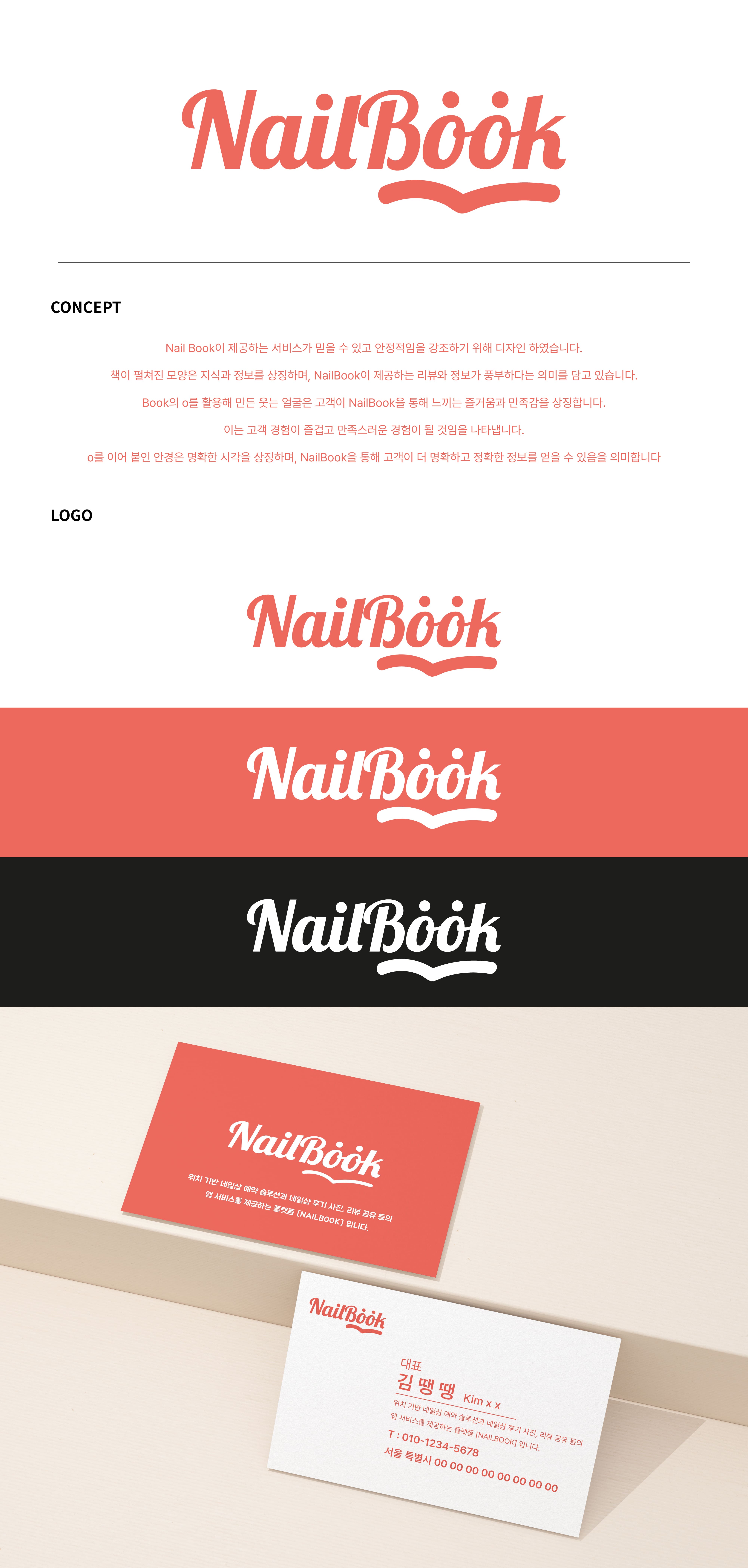 네일샵 'NailBook'의 브랜드 아이덴티티를 구축하는 디자인 작업이에요. 심플하면서도 고급스러운 느낌을 원하셨고, 젊은 여성 고객층을 타겟으로 잡았어요.