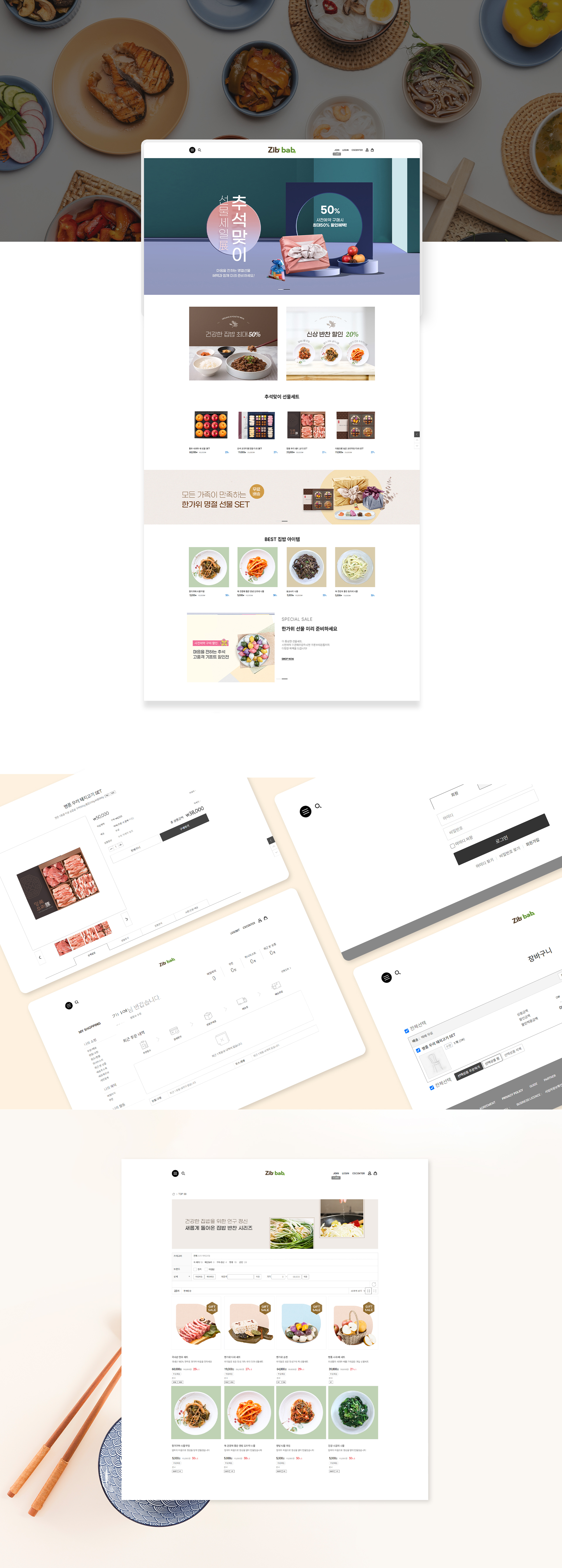 메인 배너는 집밥의 주력 상품을 강조하고, 다양한 할인 이벤트를 효과적으로 노출하여 고객의 구매 욕구를 자극하도록 디자인했습니다. 각 상품 상세 페이지에는 제품 설명과 함께, 성분, 원산지 등 중요한 정보들을 명확하게 표기하여 소비자의 선택을 돕도록 구성했어요.