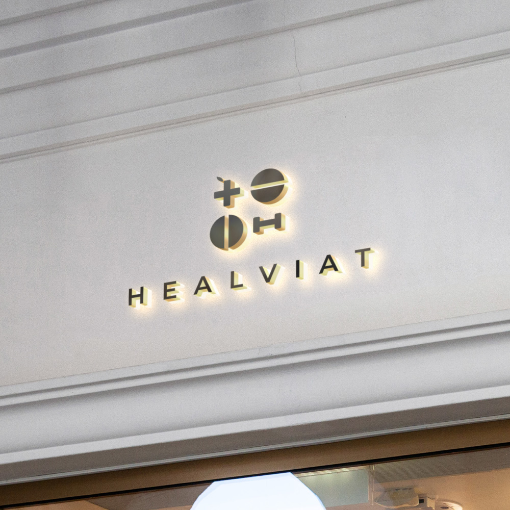 색상은 고급스럽고 신뢰감 있는 골드와 차분하고 안정적인 색상을 사용하여 HEALVIAT의 전문성과 신뢰도를 높였습니다. 다양한 매체에 적용 가능하도록 디자인되었으며, 심플하면서도 기억에 남는 디자인으로 브랜드 인지도 향상에 도움을 줄 수 있도록 제작했습니다.