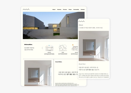 안녕하세요! 아임웹 전문가 스마일트리입니다. 이번에 소개해드릴 포트폴리오는 '시공&플랜'이라는 건축 디자인 회사의 웹사이트입니다. 세련되고 고급스러운 이미지를 강조하여, 건축 디자인 회사의 전문적인 이미지를 효과적으로 보여주는 것을 목표로 했어요.