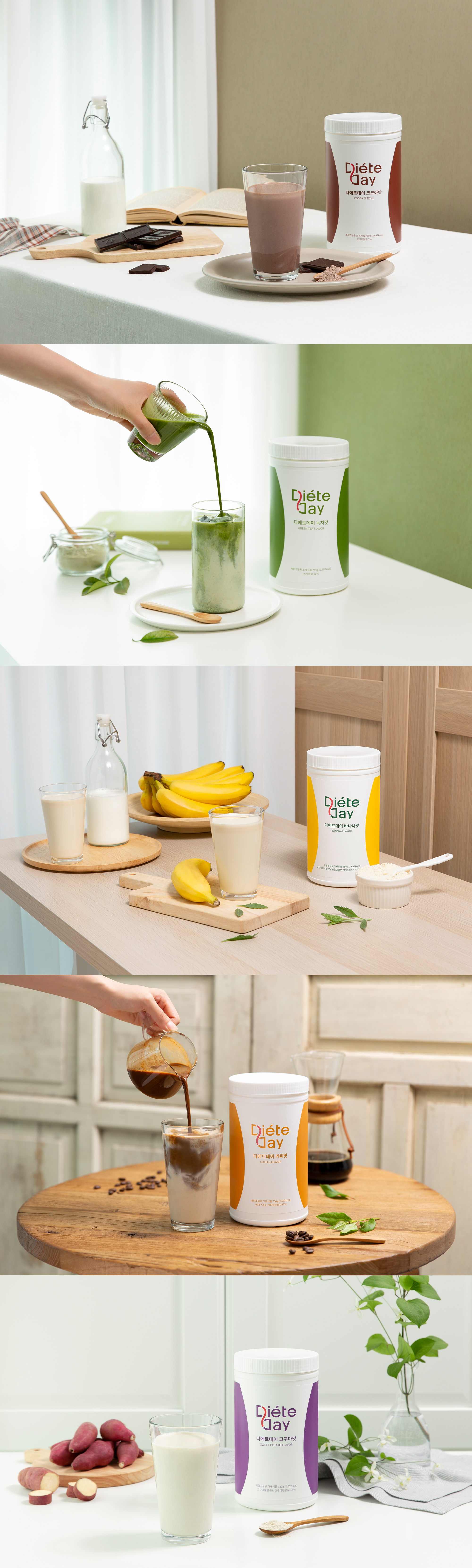안녕하세요! 아임웹 전문가 Little.D입니다. 이번 포트폴리오는 다이어트 쉐이크 브랜드 '디에트데이'의 패키지 디자인 작업입니다. 건강과 아름다움을 추구하는 여성 고객을 타겟으로, 제품의 특징과 브랜드 아이덴티티를 효과적으로 전달하는 디자인을 목표로 했어요.