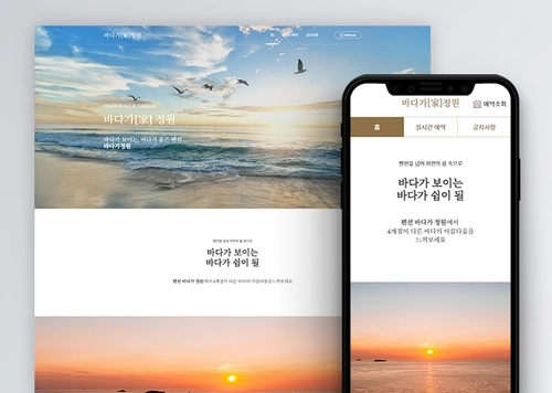 이번 프로젝트의 핵심 컨셉은 '바다와 달의 조화'를 통해 해월호텔의 고급스러움과 편안함을 동시에 나타내는 것이었어요. 해월호텔 특유의 분위기를 고려하여, 푸른 바다와 아름다운 노을을 배경으로 한 이미지를 메인에 사용하여 고객들에게 편안하고 긍정적인 첫인상을 심어주고자 했습니다.