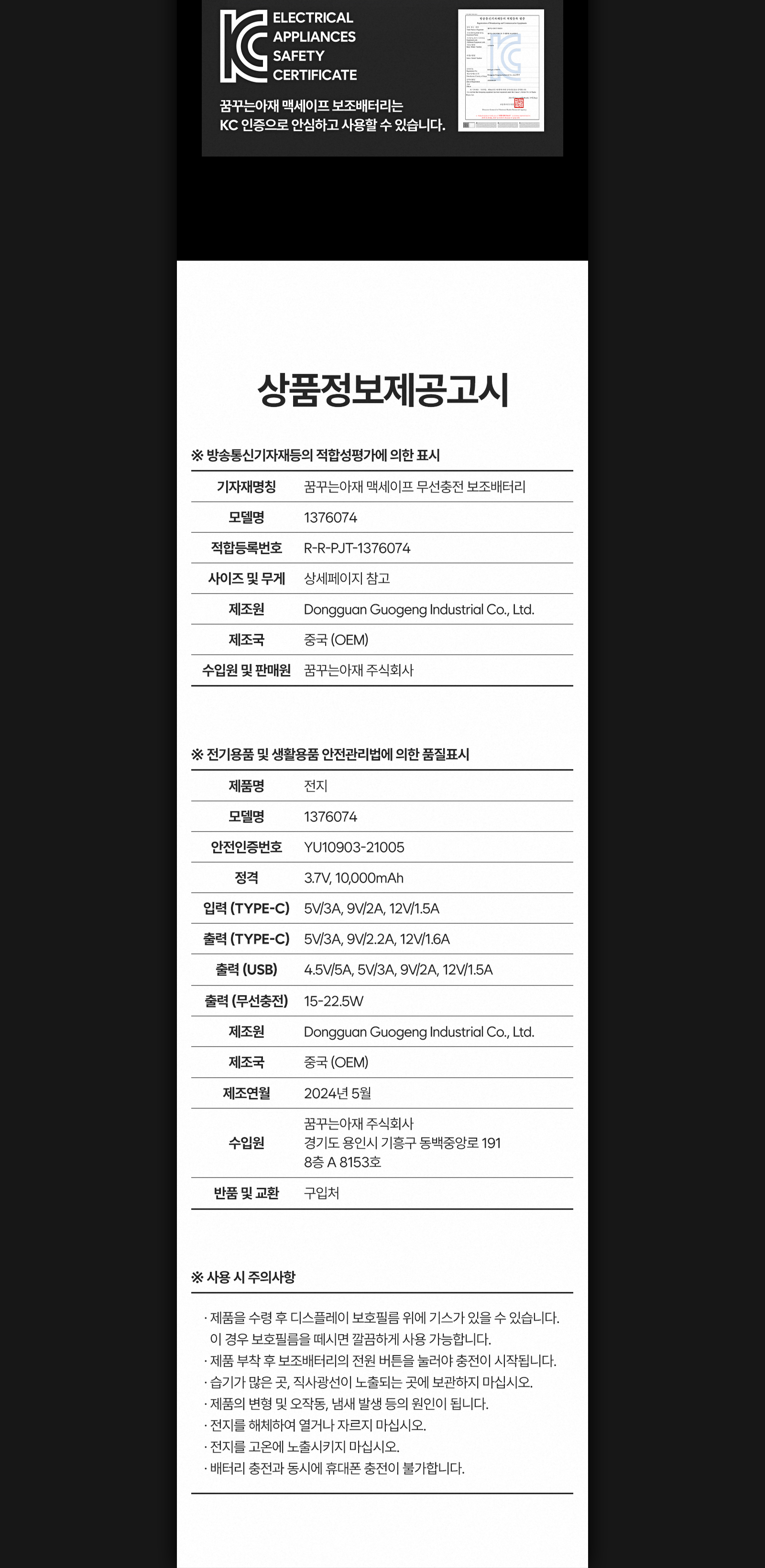 컨셉은 '고품질 이미지와 간결한 정보 전달'입니다. 보조배터리의 기능과 특징을 직관적으로 보여주는 고화질 이미지를 사용했고요, 복잡한 설명보다는 필요한 정보만 간결하게 전달하여 소비자의 구매 결정을 돕는 데 집중했어요. 특히, 제품의 강점을 부각하여 소비자의 궁금증을 해소하고 구매 욕구를 자극하는 데 중점을 두었습니다.
