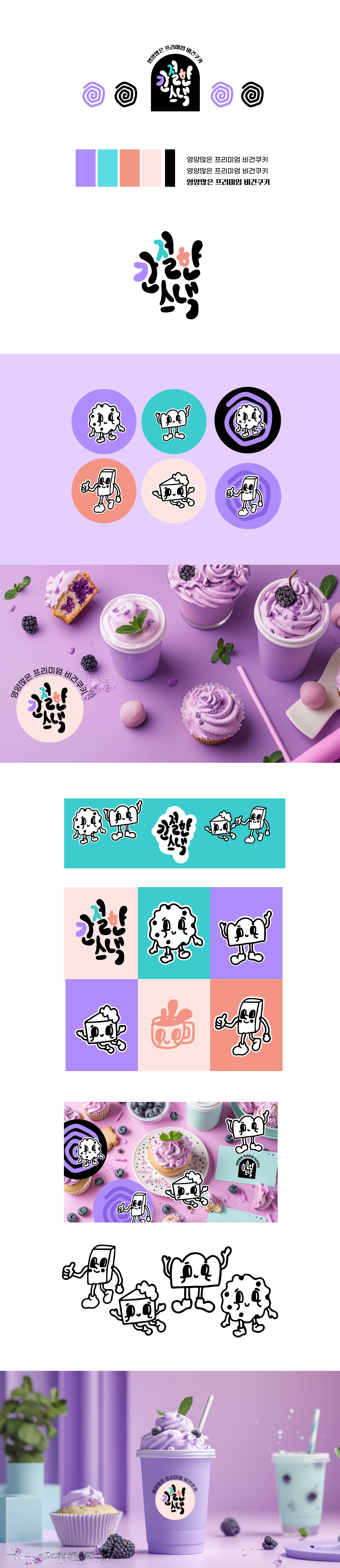 디자인 과정에서는 다양한 스낵 이미지를 귀여운 캐릭터로 형상화했어요. 쿠키, 빵, 케이크 등 다양한 간식을 각각의 개성 있는 캐릭터로 표현하여 시각적인 재미를 더했고, 전체적으로 파스텔톤의 부드러운 색감을 사용하여 따뜻하고 친근한 분위기를 연출했어요. 로고는 심볼형과 캐릭터형 두 가지 버전을 제작하여 다양한 용도로 활용할 수 있도록 했답니다. 또한, 브랜드의 컬러 팔레트를 설정하고, 이를 기반으로 다양한 어플리케이션 디자인을 제작하여 브랜드의 일관성을 유지했어요. 예를 들어, 제품 패키지, 소셜 미디어 콘텐츠, 웹사이트 디자인 등에 일관된 시각적 언어를 적용하여 브랜드 인지도를 높이는데 기여했어요.