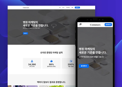 보라색을 포인트 컬러로 활용하였습니다. 우측에는 플로팅 배너를 넣어서 손쉽게 상담 문의 및 예약이 가능하도록 하였습니다.