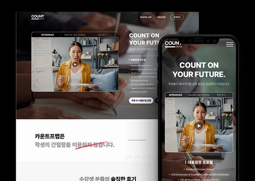 웹사이트 디자인 컨셉은 ‘학생들의 학습에 대한 자신감 향상’입니다. 깔끔하고 직관적인 디자인으로 학원의 커리큘럼과 강사진 정보를 효과적으로 보여주고, 학생들이 원하는 정보를 쉽게 찾을 수 있도록 구성했어요. 메인 배너에는 학습과 관련된 이미지를 사용하여 학원의 분위기를 전달하고, 각 과정에 대한 설명은 간결하고 명확하게 작성하여 학부모와 학생 모두에게 쉽게 이해될 수 있도록 했습니다. 또한, 모바일 환경에서도 최적의 사용자 경험을 제공하기 위해 반응형 웹 디자인을 적용했어요. PC와 모바일 환경 모두에서 웹사이트를 사용하기 쉽고 편리하게 만들었답니다.