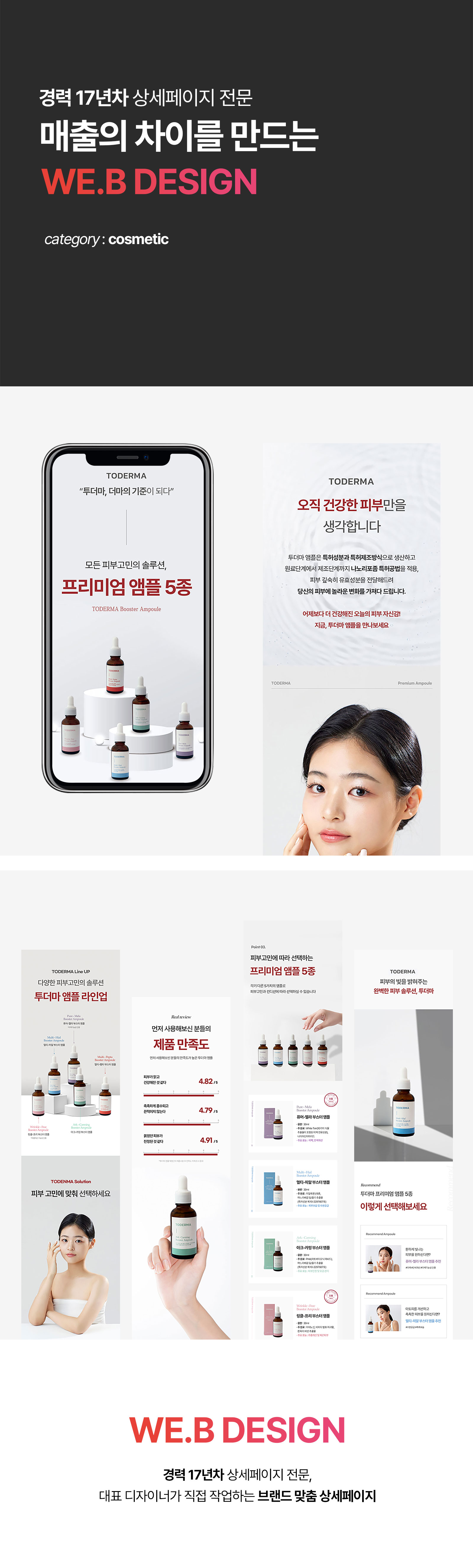 저희는 17년차 웹디자인 전문가로서 이번에 '앰플' 상세페이지 디자인을 제작했어요.