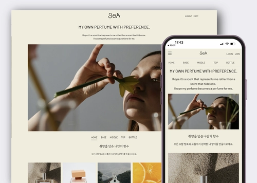 아이보리와 허브그린 계열의 컬러 팔레트는 브랜드 정체성을 일관되게 유지하며, 여유로운 여백 활용은 고급스러운 이미지를 강화합니다. 모든 디바이스에 최적화된 반응형 웹 디자인으로 모바일에서도 완벽한 사용자 경험을 보장하며, 감성적인 자연 이미지와 SNS 피드 연동은 브랜드 철학과 실제 사용자의 신뢰를 효과적으로 전달합니다.