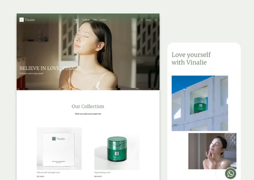 VEGANA 홈페이지는 자연주의 스킨케어 브랜드의 철학과 감성을 시각적으로 완벽하게 구현한 디자인입니다. 풀스크린 자연 배경과 브랜드 철학을 담은 문구로 시작되는 메인 페이지는 방문자의 시선을 사로잡습니다.