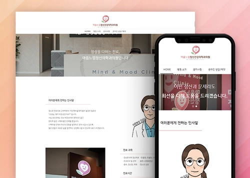 컬러 포인트: 병원의 브랜드 컬러(핑크 & 퍼플 계열)를 텍스트 강조 및 버튼 요소에 포인트로 활용해 일관성 유지