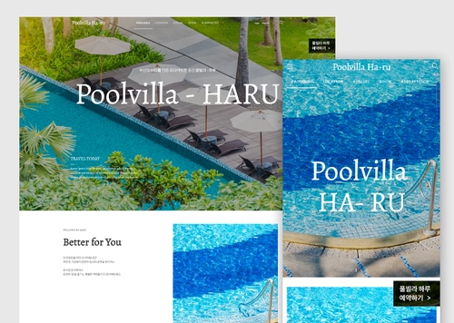 - 메인 비주얼에 풀빌라 사진과 브랜드 메시지로 첫인상 강화
