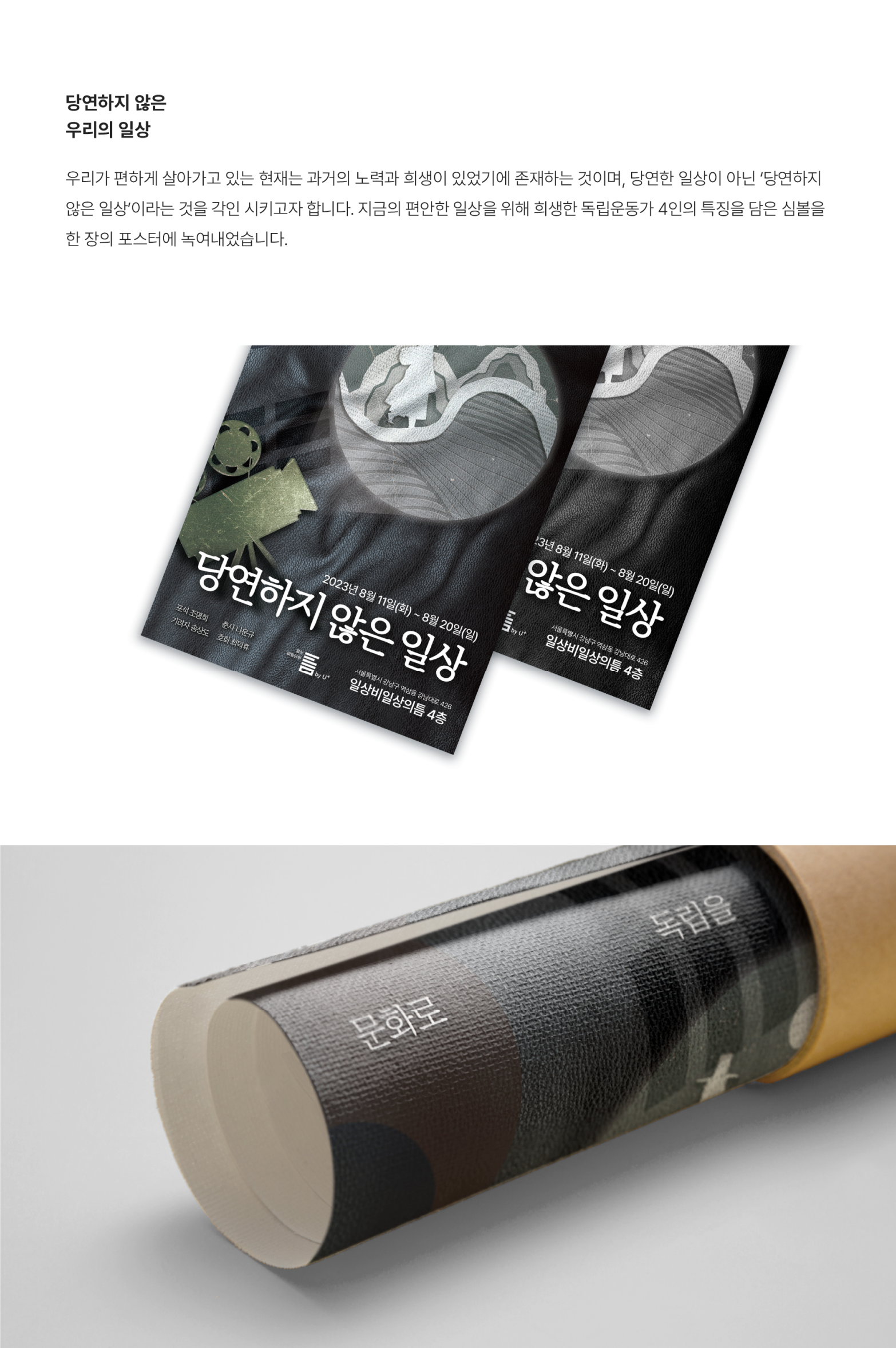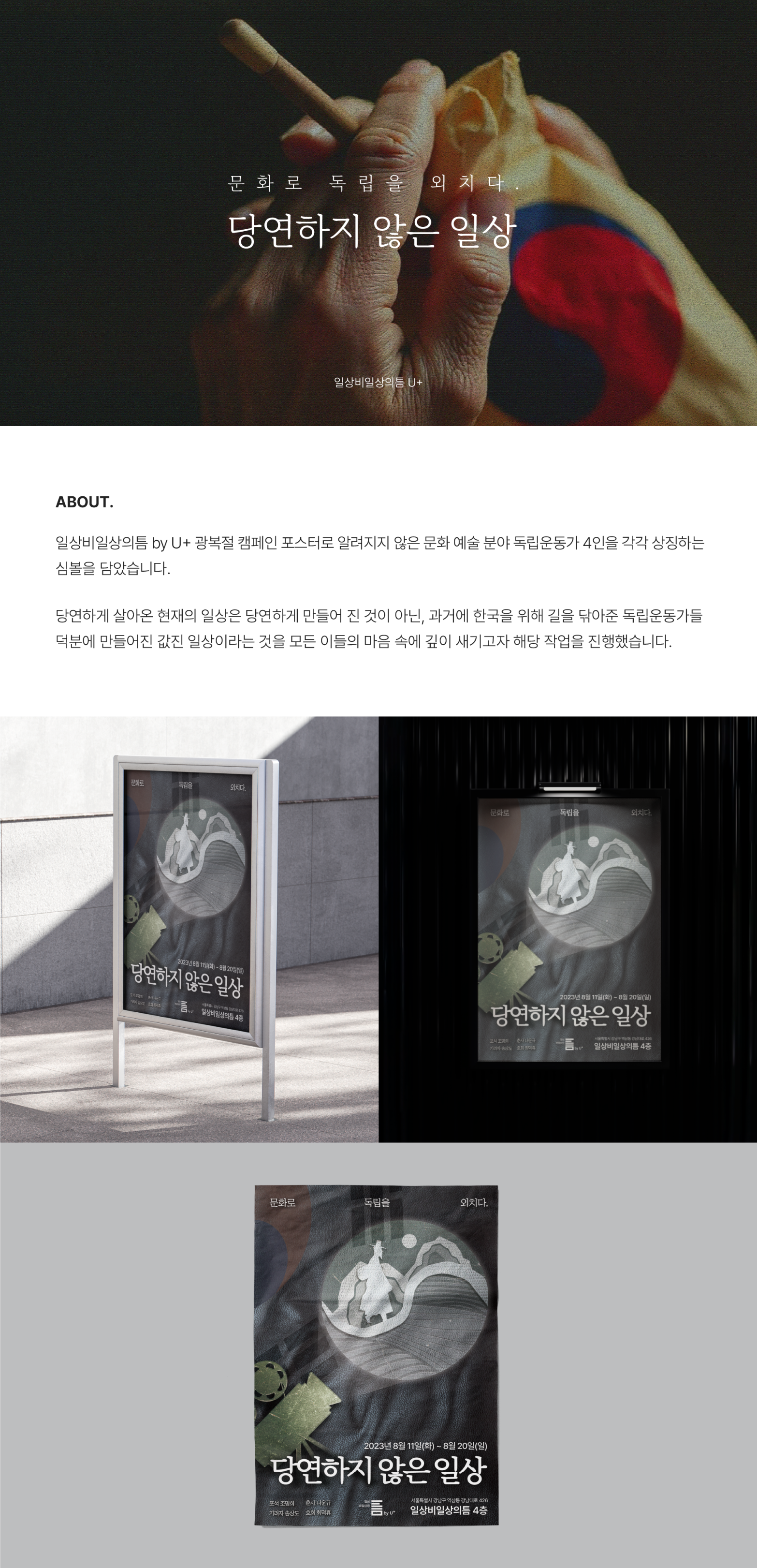 ‘일상비일상의틈 by U+’ 캠페인 포스터는 단순한 디자인 작업이 아니라, 우리가 지금 누리는 일상과 과거의 희생을 연결하는 매개체로서 기획되었습니다.