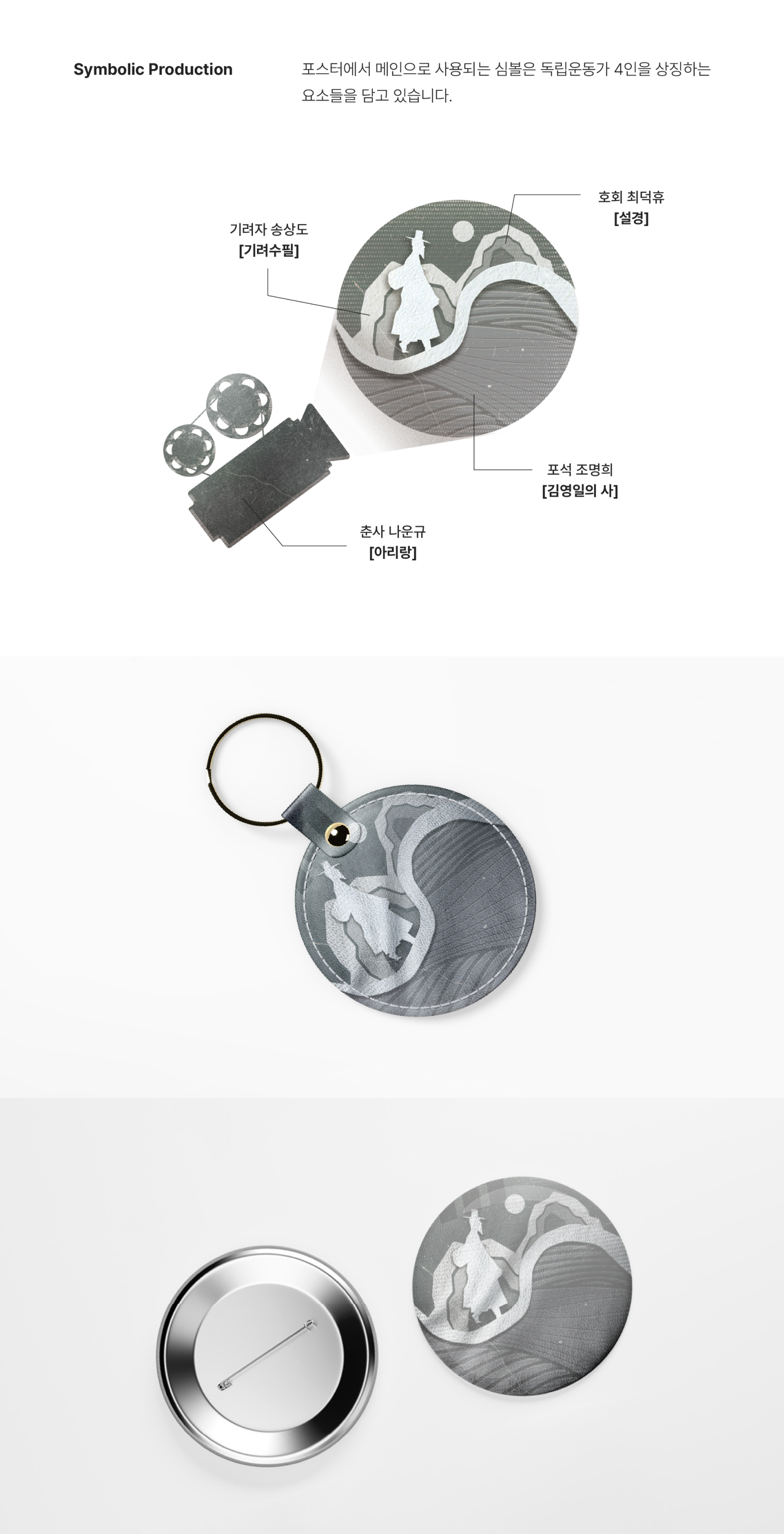 디자인 전반에는 과거의 거친 현실과 독립운동가들의 발자취를 담아내기 위해 노이즈와 스크래치 텍스처를 적극적으로 사용했습니다.