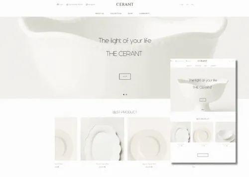 메인 화면에는 고품질의 도자기 사진을 전면 배치해 방문자의 시선을 사로잡고, 브랜드가 지향하는 가치가 명확히 전달되도록 구성했습니다.