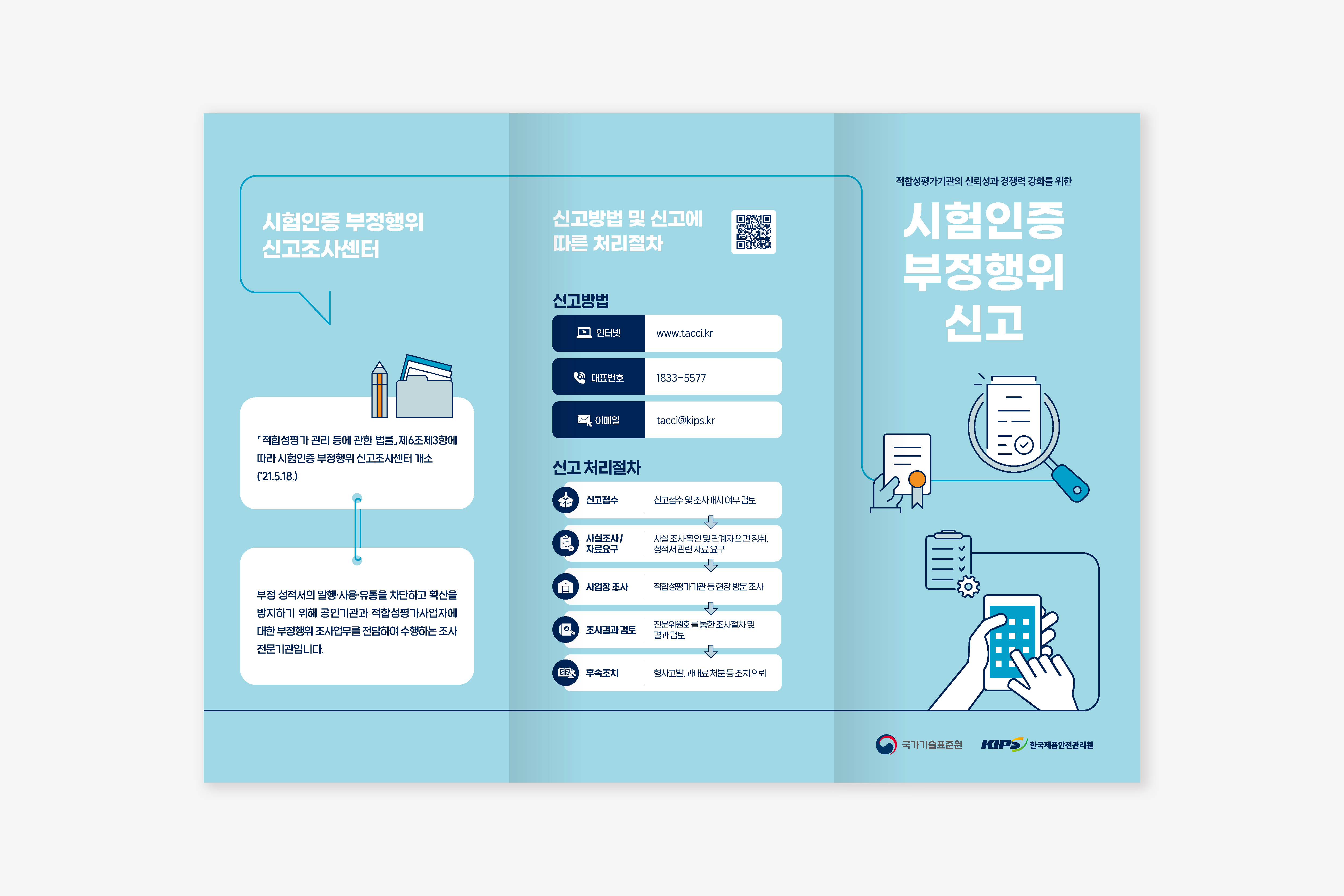 IN STUDIO는 한국제품안전관리원의 리플렛을 가독성을 최우선으로 한 깔끔하고 직관적인 구조로 디자인했습니다.