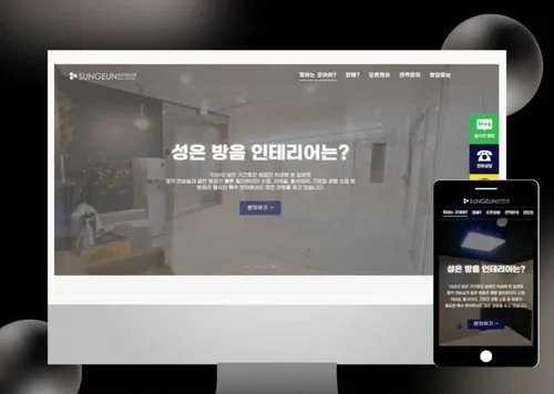 조명 인테리어 시공 전문 업체 '착한조명'의 리뉴얼 프로젝트예요. 화려한 설명보다는 실제 시공 사례가 말하도록, 포트폴리오를 크고 여유롭게 배치했습니다.