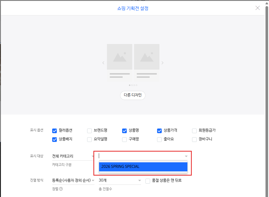 표시대상 항목에서 기획전 이름을 선택합니다.