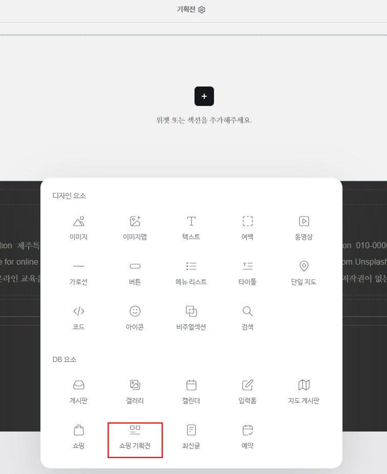 쇼핑 기획전 위젯을 클릭합니다.