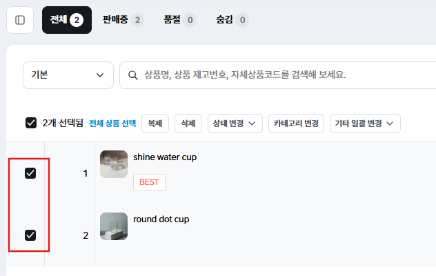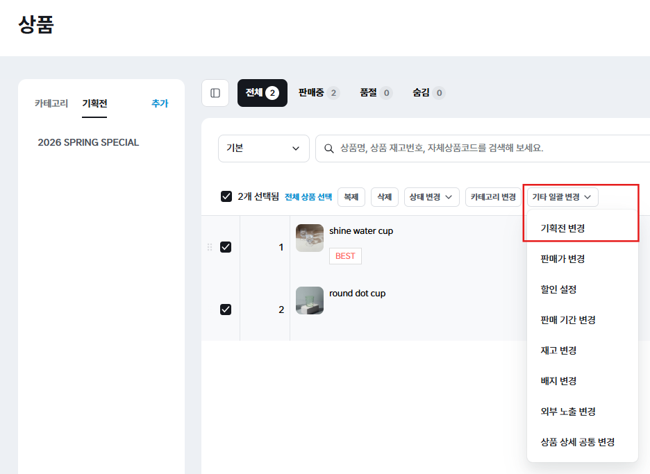 기획전에 추가할 상품(들)의 왼쪽 체크박스를 선택합니다.