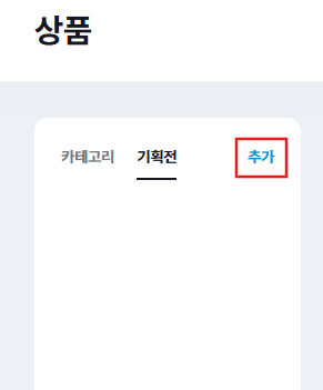 상품관리 페이지 왼쪽 하단 기획전 추가를 클릭합니다.