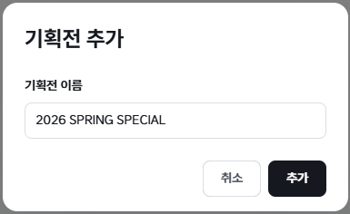 기획전 이름을 입력하고, 기획전 만들기를 클릭합니다.