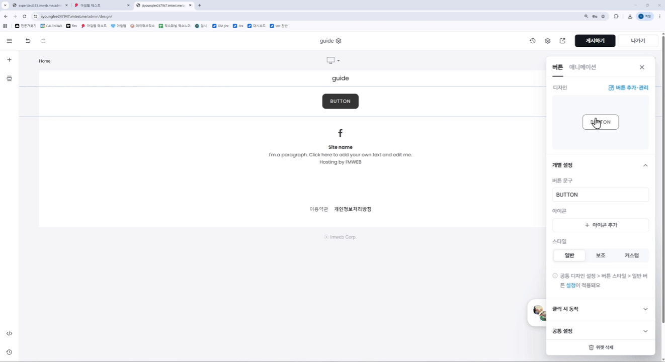 - 일반: 공통 디자인 설정 > 버튼 스타일 > 일반 버튼 설정이 적용됩니다.