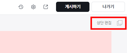 디자인 모드 오른쪽 상단에 위치한 상단 편집을 클릭합니다.
