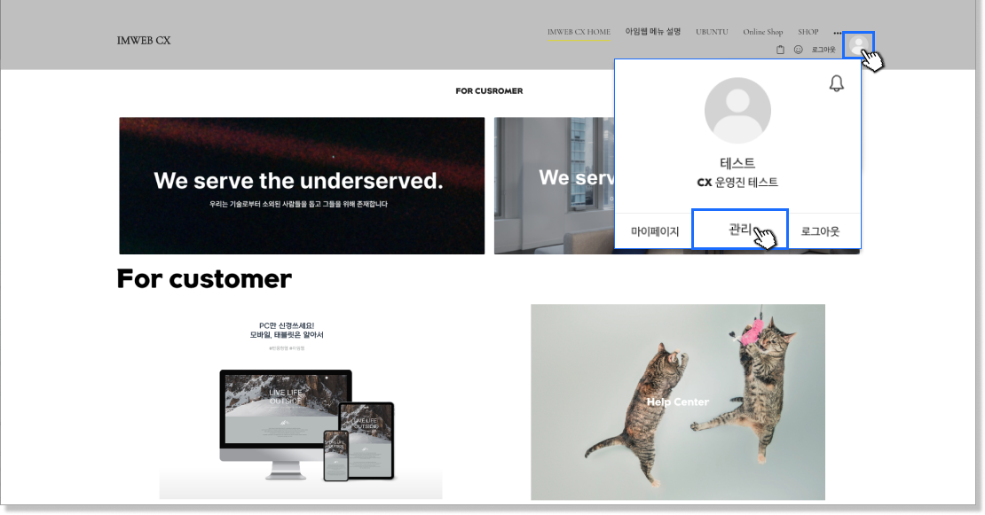 사이트에 이미 운영진 계정으로 로그인한 상태에서 이용할 수 있는 방법이에요.