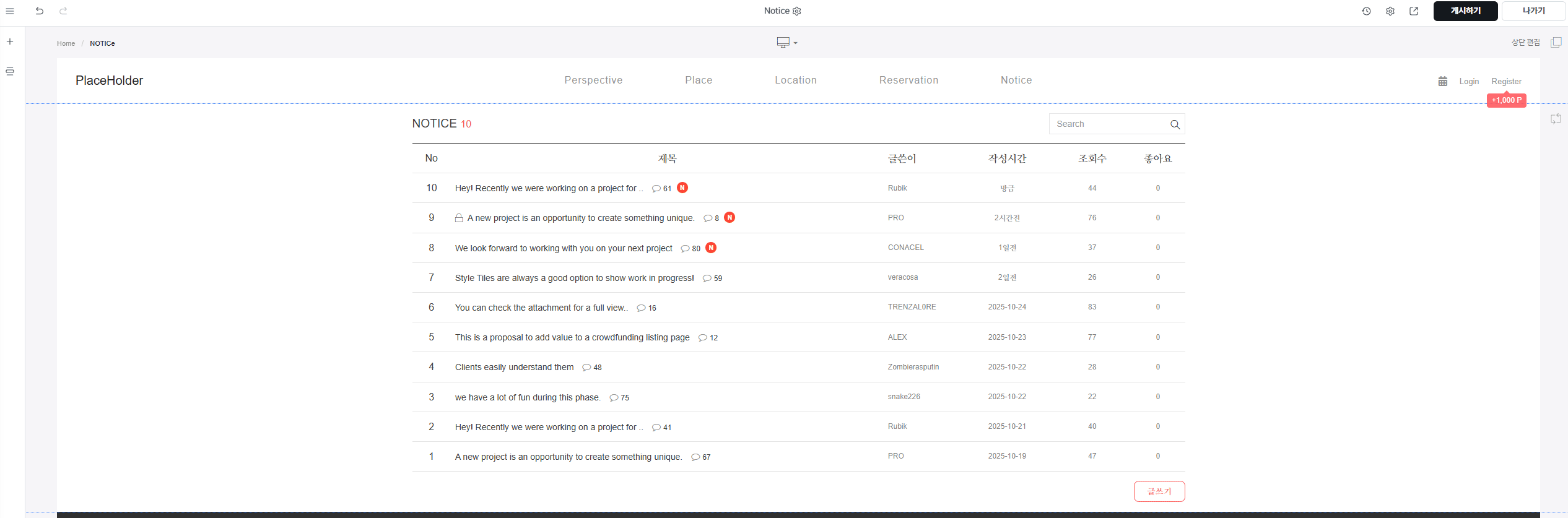 - 글쓰기 버튼 : 글쓰기 버튼을 항상 표시하거나, 글 작성 권한이 있는 사용자에게만 표시 되도록 설정할 수 있어요.