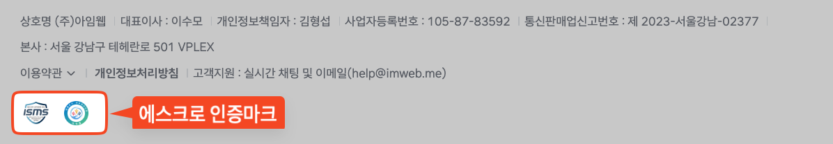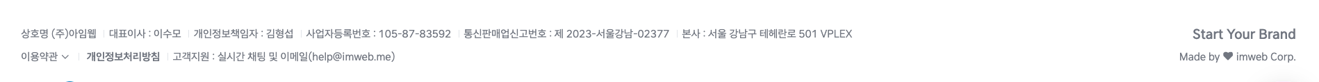 아임웹도 사이트 하단에 있는 통신판매업 신고번호를 클릭하면, 정보를 바로 확인할 수 있어요