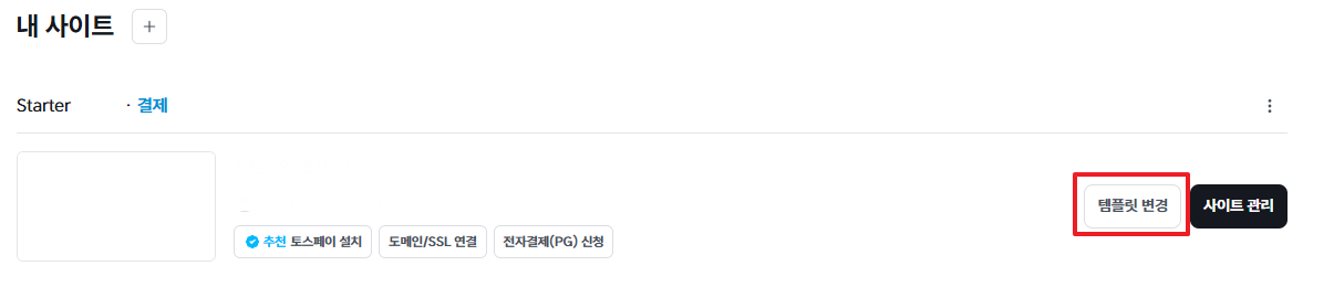 3. 템플릿을 변경하려는 사이트의 오른쪽 끝에 위치한 템플릿 변경 버튼을 클릭합니다.
