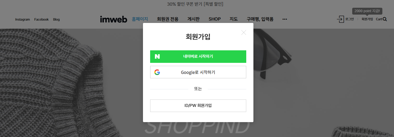아임웹 관리자 페이지로 이동합니다.
