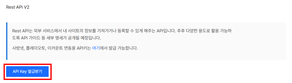 파스토와 내 쇼핑몰을 연동하려면 Rest API 키가 필요합니다. 이미 API Key와 Secret Key를 발급받은 경우, 이 과정은 건너 뛰어도 무방합니다.