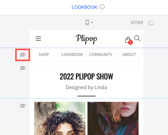 남은 모든 섹션도 왼쪽의 눈 아이콘을 클릭해 숨겨줍니다.