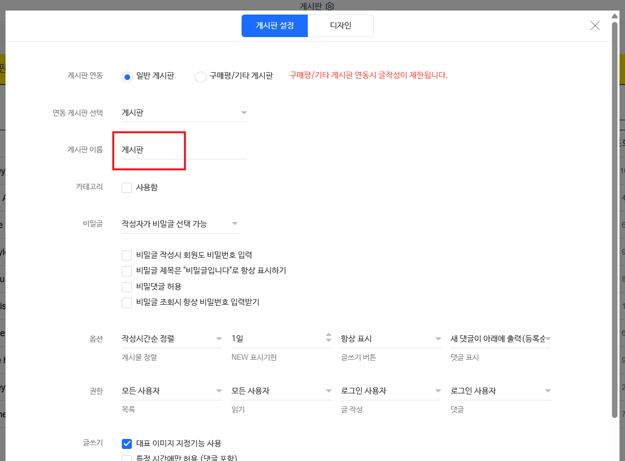 게시판 이름 변경은 게시판 설정 탭에서 가능하니 확인 부탁드립니다!