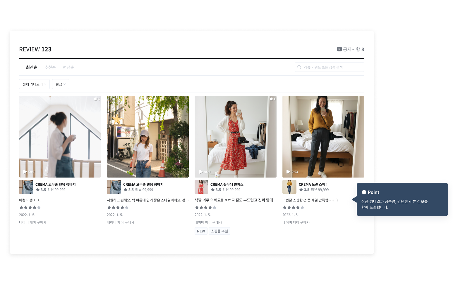 상품별로 리뷰수가 많지 않을 때 효과적으로 사용할 수 있어요.