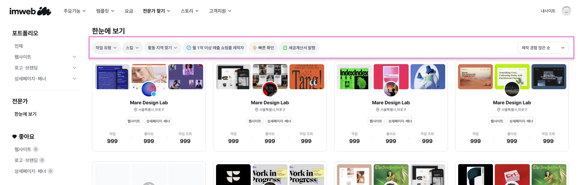 스킬 : 전문가 관리 페이지에서 설정한 스킬이 필터로 제공돼요