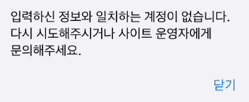 연락처가 없는 계정은 가입한 휴대전화로 찾기로 진행할 수 없습니다.